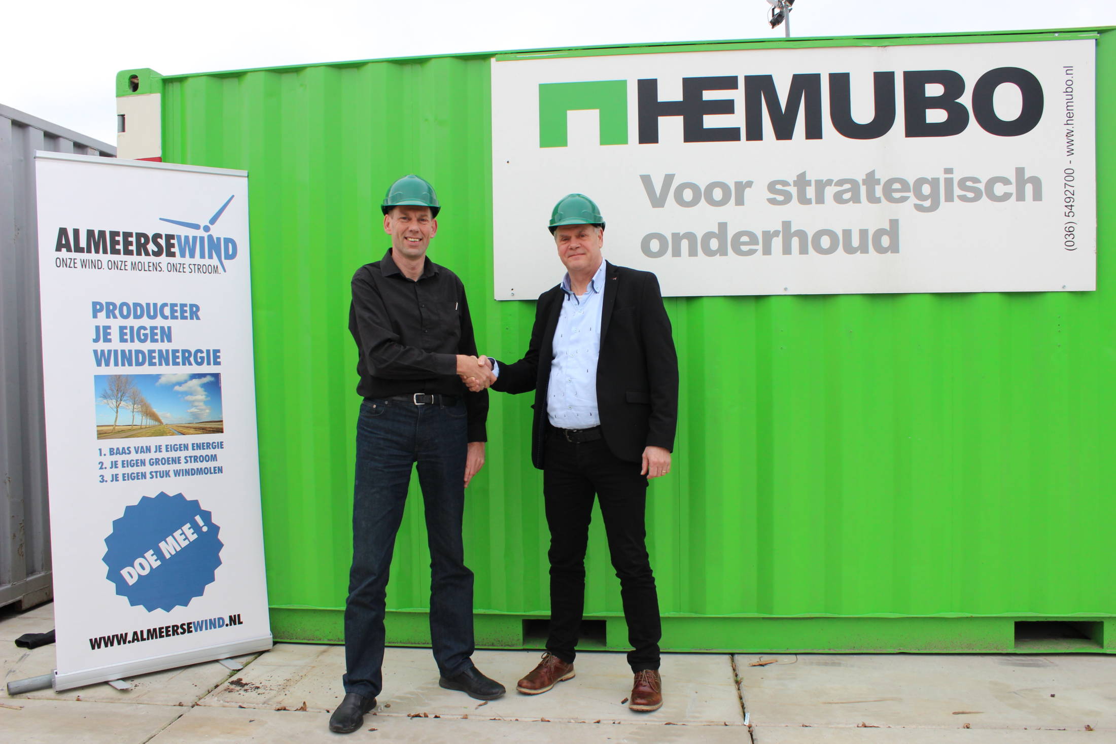 Hemubo heeft in maart 2017 een samenwerkingsovereenkomst getekend met Almeerse Wind voor de afname van duurzame, lokaal opgewekte energie. Zowel het hoofdkantoor in Almere, als het kantoor van Hillen & Roosen in Amsterdam als Kennemer Betonbouw in Beverwijk stappen hiermee over op groene energie. Almeerse Wind levert ook groene stroom aan alle circa 150 bouwplaatsen en -projecten door heel Nederland waar we actief zijn.